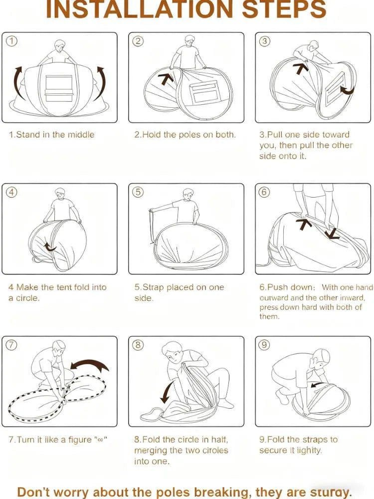 Quick & Easy Setup: This instant pop-up tent comes with pre-assembled poles and can be set up in seconds—just open the bag and release. Simple and enjoyable, it saves valuable camping time. Even if rain arrives suddenly, there’s no need to panic.