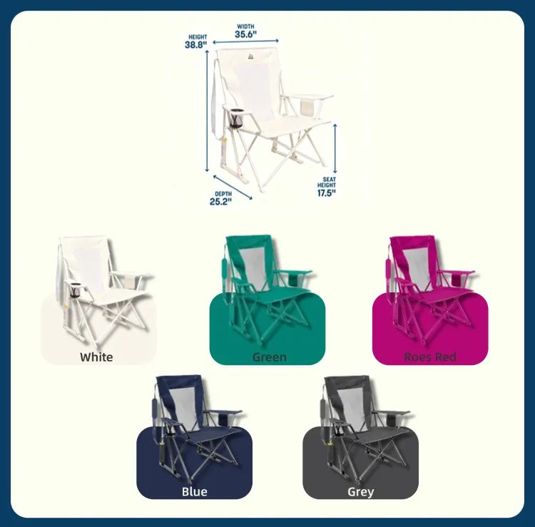 Bought two of these chairs for the family. Everyone fights over who gets to use them! They're comfy, cool, and the rocking feature is a hit. Folds down easily too. Worth every penny for the comfort and relaxation they add to our trips.​